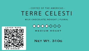 Expertly blended using top coffees from across Central and South America. Terre Celesti means "Heavenly Lands" in Italian and represents and expresses the profound sensory beauty found in these origins both in and outside of the cup. This is our original house blend. Originally named Cosecha Superior we sound some much ethereal beauty in these coffees we renamed it accordingly.