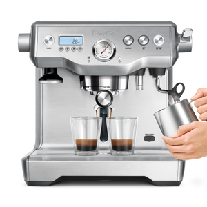Full bodied coffee with rich and complex flavors is created using the ideal dose of 22g of freshly ground beans delivered by a professional style 58mm stainless steel portafilter.